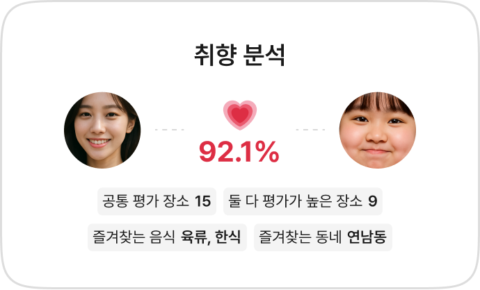 서로의 랭킹을 토대로 나와의 입맛이 잘 맞는 사람을 찾아보세요.