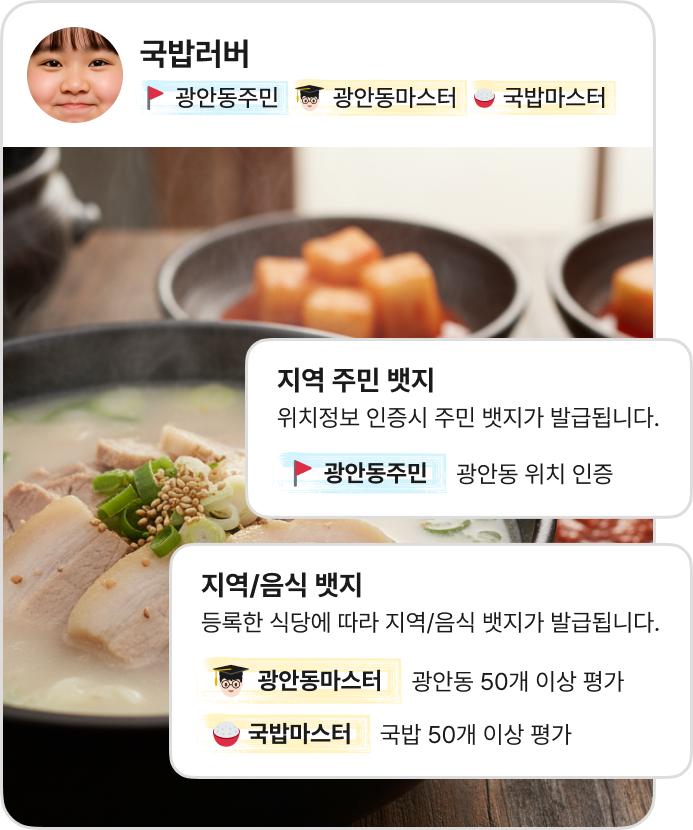 ‘뱃지’로 지역/음식 전문가를 확인하세요.